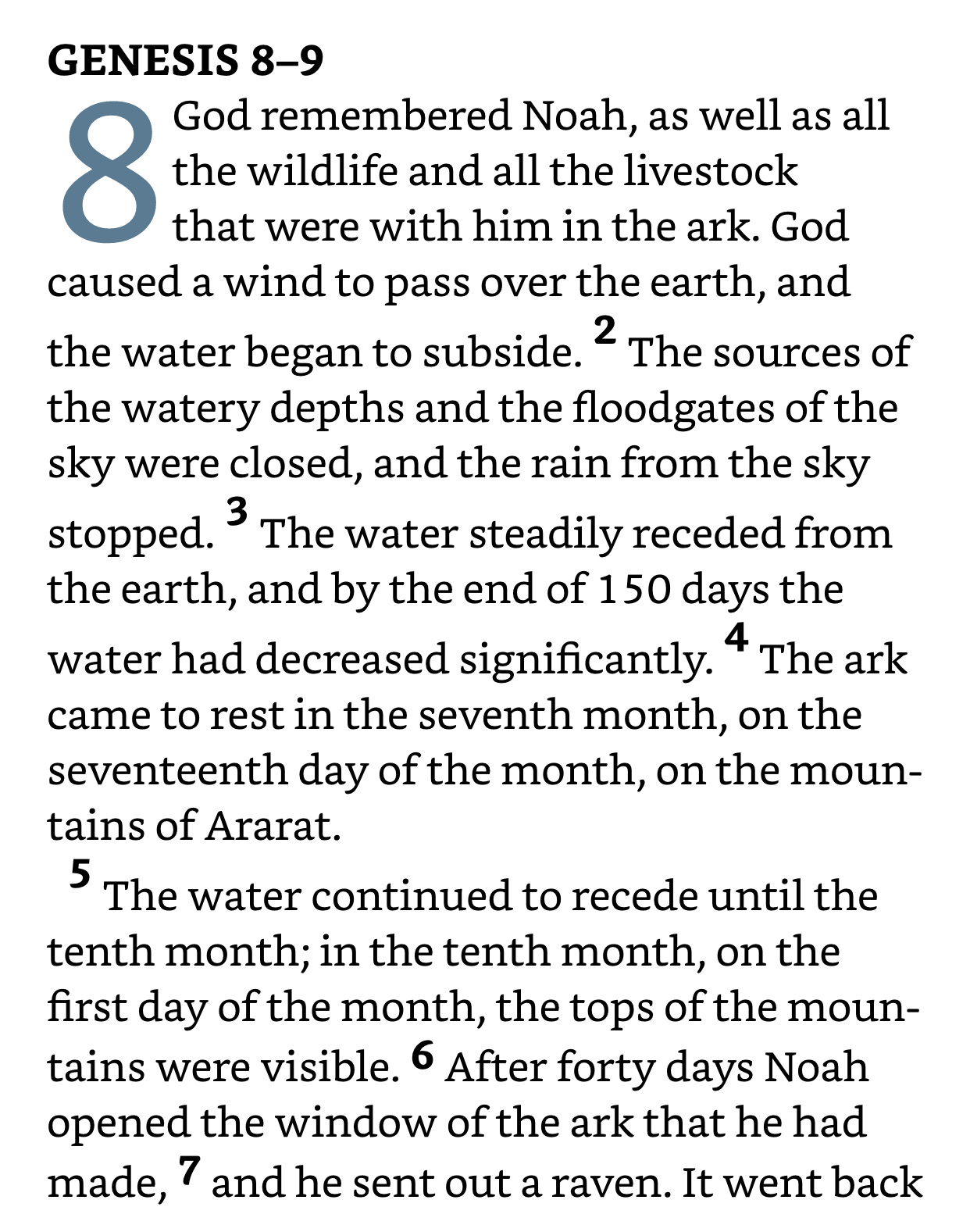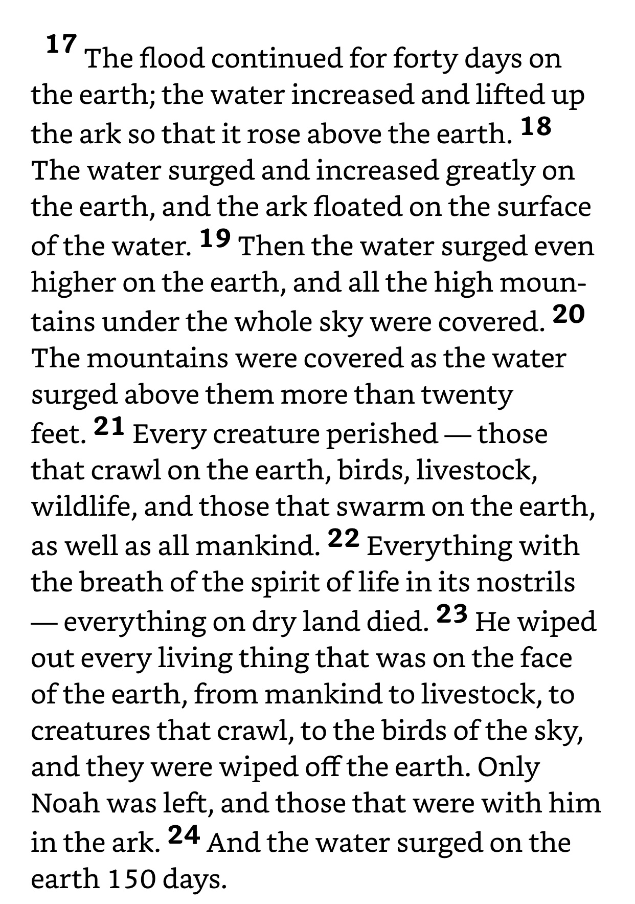 I don’t know about you but I’ve wondered about the ‘flood’ that was 40 days and 40 nights and the last line of chapter 7 states, “and the water surged on the earth 150 days”.